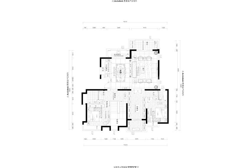本案現場層高不高,整體設計偏向中式的對稱美學的表現方式,同時在2樓設置了2個屋頂花園,做到四季有景。