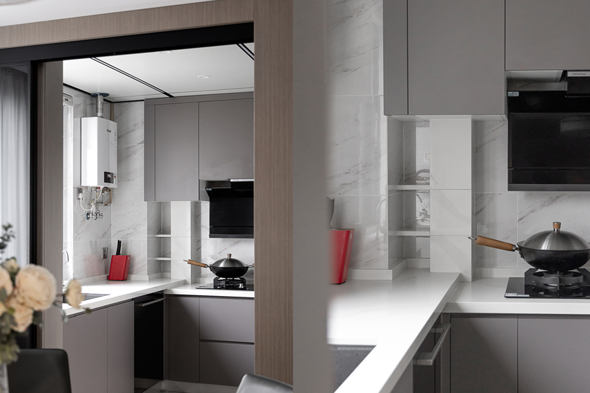 廚房在設(shè)計規(guī)劃中,實際面積不宜太大,容易造成空間利用的浪費,但太小又容易造成空間的狹窄,最適宜的面積大小在10㎡。另外還需要確保空間擁有充足的采光以及通風(fēng)效果,在空間足夠的情況下,可以進行吧臺的設(shè)計,這樣人少的時候,可以直接在廚房用餐,提高了空間利用率。如果廚房面積不大,在設(shè)計的時候,則需要多增加收納功能。