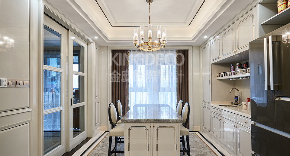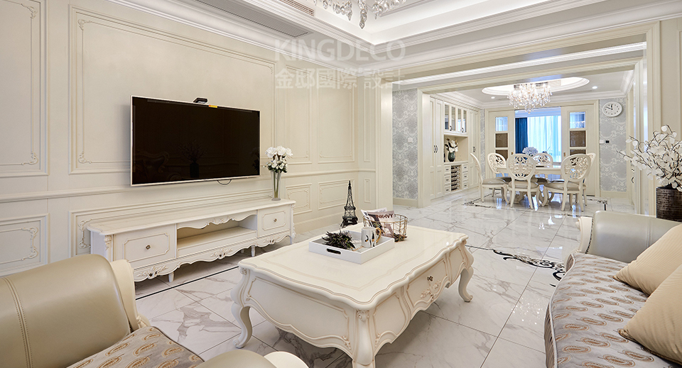案例介紹: “形散神聚”是新古典的主要特點。在注重裝飾效果的同時,用現代的手法和材質還原古典氣質,新古典具備了古典與現代的雙重審美效果,完美的結合也讓人們在享受物質文明的同時得到了精神上的慰藉。講求風格,在造型設計上不是仿古,也不是復古,而是追求神似。用簡化的手法、現代的材料和加工技術去追求傳統式樣的大致輪廓特點。